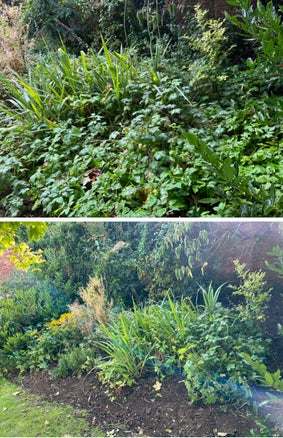 Weeding and Clearing: The first step involved clearing out all the overgrown vegetation and weeds that had encroached upon the boundaries. This revealed the true potential of the garden.