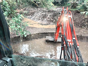 From the cockpit; 30 years of residue being cleared from a duck pond.